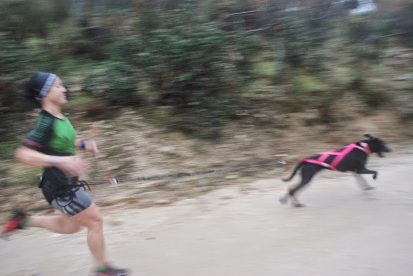 Susana - India, marcaron un crono en meta de 31'27'', siendo 28ª de la General Absoluta y 3º de la General de Senior Femenina tras su vuelta a la competición. Esto es lo que nos relataba al finalizar la prueba: "Esta carrera ha sido un reto. Solo llegar a ella después de una lesión ya era una gran meta. Gracias a todos aquellos que de una u otra manera me han ayudado he podido estar, correr, terminar, y llegar en cuarta posición. Y SOBRETODO: Gracias a mi pequeña, ¡que grande eres! La carrera la enfrentaba con miedo, nos colocamos en las ultimas posiciones que el año pasado la salida fue traumática e India casi se escapa. El perfil es mitad subida y mitad bajada, y aunque salimos muy fuertes (así es el canicross), los kilómetros siguientes bajas el ritmo pero luego toca una larga bajada. Con muchísima lluvia con la que apenas se veía, apenas sentía las manos, pero había que olvidarlo, eso era lo de menos. El recorrido del bosque me olía a setas, los senderos se hacian estrechos e íbamos adelantando corredores. No era el objetivo, pero, estábamos disfrutando de nuevo, después de tanto tiempo. Portón metálico y bajada.... ¡¡¡A todo trapo!!! Lo que menos me gusta es subir al polideportivo porque cambiamos al asfalto y los perros suben fatal y desmotivados. La mañana estuvo muy desapacible con tanto agua, pero gracias a todos los que allí se encontraban lo pasamos genial."